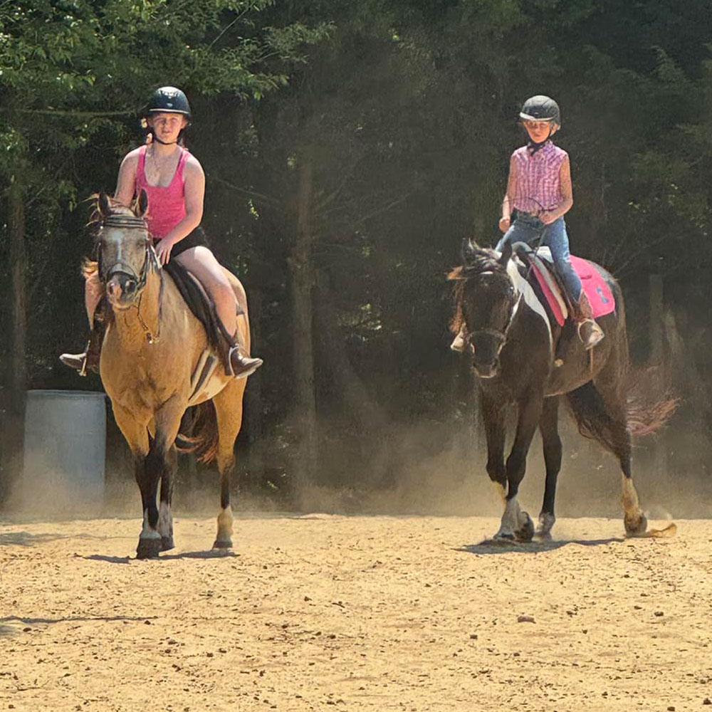 Four full days on the farm for riders ages 8 and up. Each day includes horseback riding, horsemanship and horse care instruction, arts and crafts, and water games. Campers learn the real stuff, grooming, tacking, riding, in a small-group setting where everybody gets hands-on time with the horses.